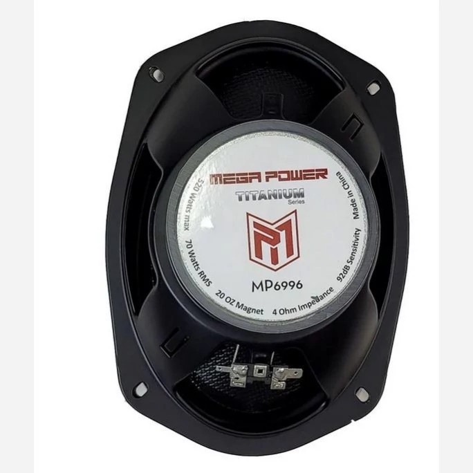 بلندگوی فوق العاده خوش ساخت برند مگاپاور مدل 6996که طراحی خاص خود را دارد به دلیل صفحه تزریقی این بلندگو دارای بیس عمیق میباشد و دارای یک عدد میدرنج نسبتا بزرگ در وسط بلندگو است حداکثرقدرت این بلندگو520 وات وتوان مداوم 70 وات و مگنت ان 20 oz میباشد